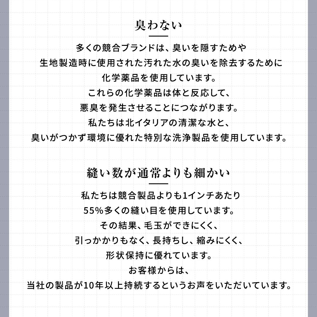 生地はエコテックス規格100の認証を受けていて、イタリアアルプスの蒸留水を使用して